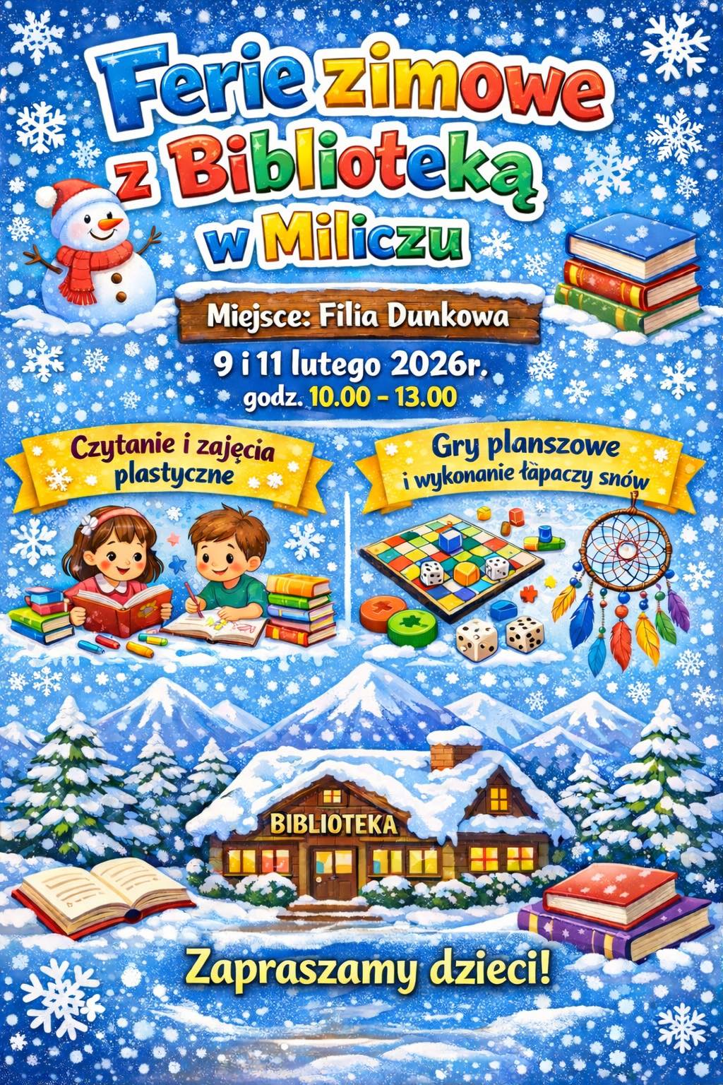 Milicka biblioteka zaprasza dzieci w wieku od 7 do 10 lat na bezpłatne zajęcia feryjne pod hasłem „Biblioteka Rozmaitości”. Spotkania odbędą się w dniach od 2 do 6 lutego 2026 roku, w godzinach 11.00–13.00,...