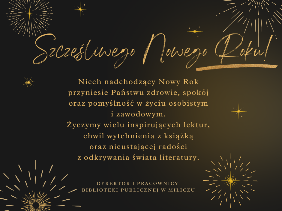 Niech nadchodzący Nowy Rok przyniesie Państwu zdrowie, spokój oraz pomyślność w życiu osobistym i zawodowym. Życzymy wielu inspirujących lektur, chwil wytchnienia z książką oraz nieustającej radości z odkrywania świata literatury.