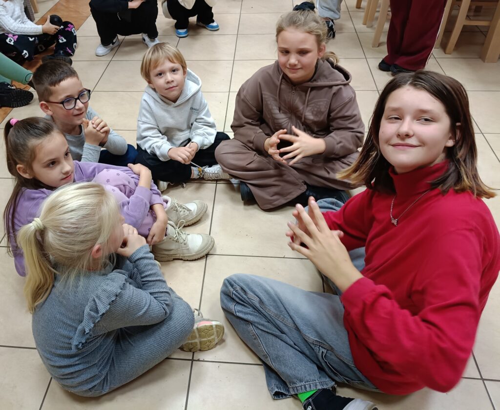 W grze „głuchy telefon” dzieci udowodniły, że mają doskonały słuch – przekazywane zdanie dotarło prawie bez zmian, zaledwie z „chichoczącym” dodatkiem.