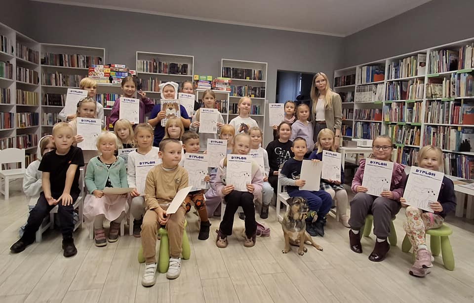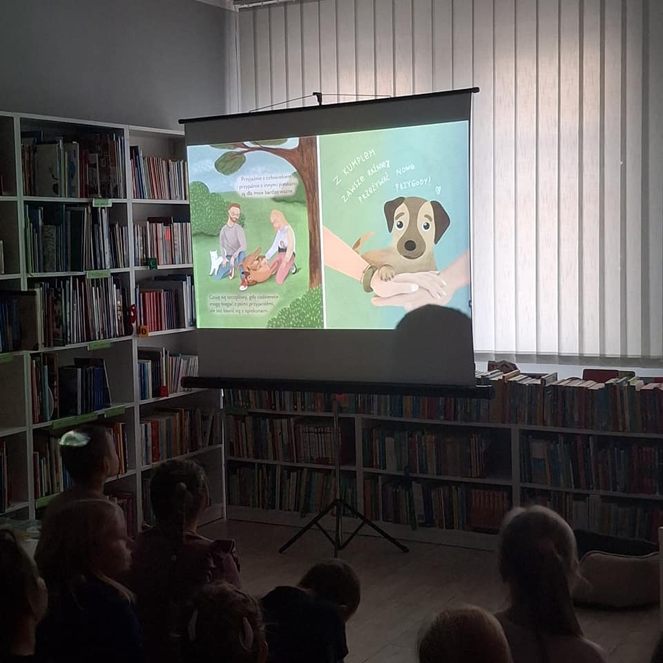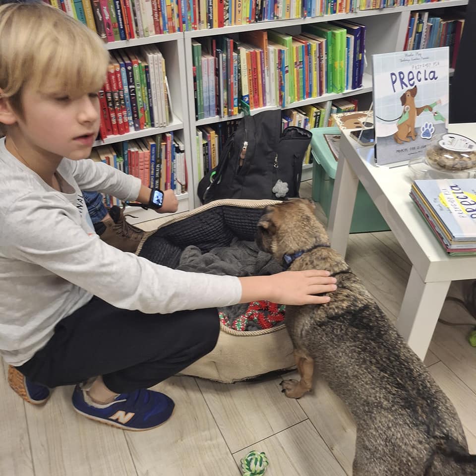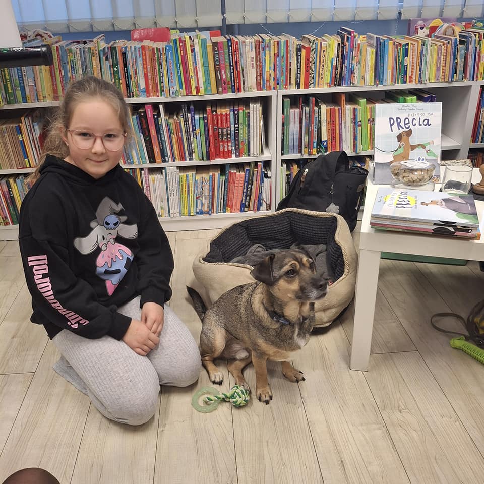 Podczas zajęć młodzi czytelnicy wzięli udział w mini quizie o psach oraz z uwagą wsłuchiwali się w fragmenty książki o przygodach Precla. Dzieci mogły również obejrzeć i zakupić kolorowe książki oraz kolorowanki z ulubionym bohaterem.