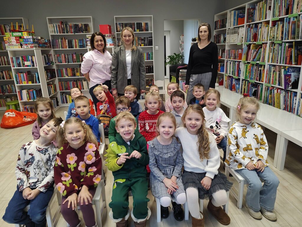 W naszym Oddziale Dziecięcym czuć już wyraźnie nadchodzące święta. Choinka dumnie prezentuje swoje ozdoby, Mikołaj zdążył nas odwiedzić, a teraz zaglądają do nas Elfy, dopytując, czy dzieci były grzeczne. Odpowiedź jest prosta – oczywiście, że tak! Mali goście są pełni uśmiechu, energii i radosnego gwaru, który pięknie wypełnia biblioteczną przestrzeń.