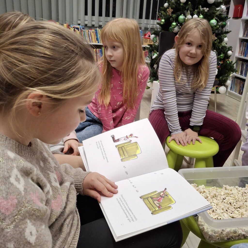 W zimowej aurze, w atmosferze nowego roku, mrozu i śnieżnych wyobrażeń, odbyło się styczniowe spotkanie Dyskusyjnego Klubu Książki dla Dzieci. Starsza grupa klubowiczów spotkała się w bibliotece, by wspólnie powitać zimę i zanurzyć się w literackim świecie.