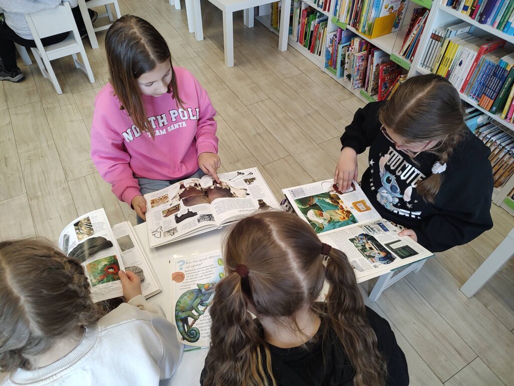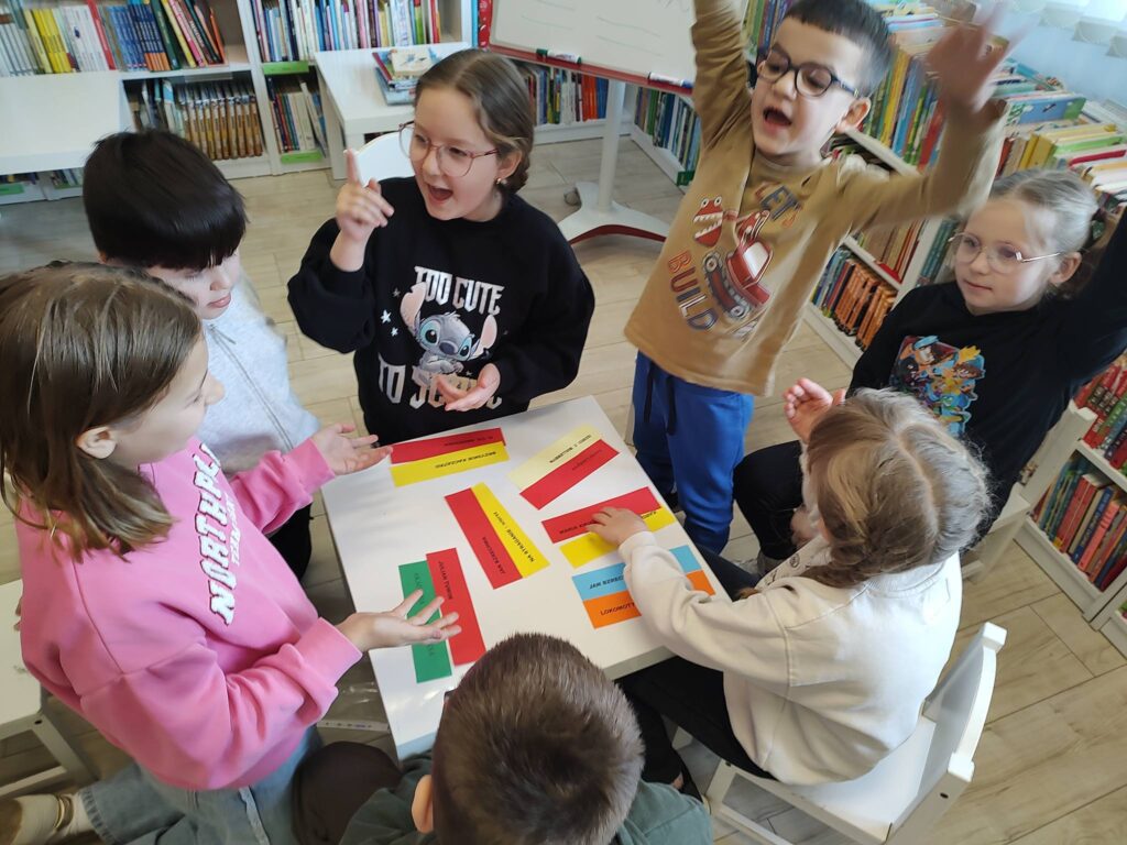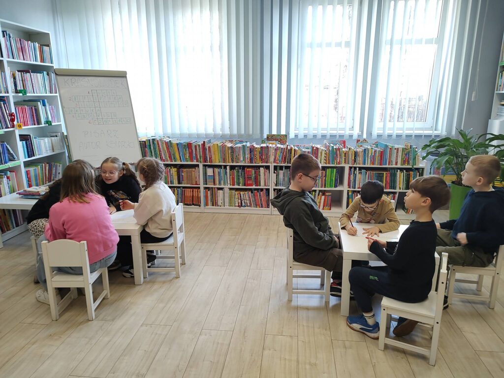 Podczas spotkania uczniowie z dużym zaangażowaniem uczestniczyli w przygotowanych zajęciach. Rozwiązali tematyczną krzyżówkę, zastanawiali się, czy pisarz i autor książki to zawsze ta sama osoba, a także zmierzyli się z różnymi zadaniami czytelniczymi. Była również okazja, aby obejrzeć najnowsze książki, które niedawno pojawiły się w naszej bibliotece.