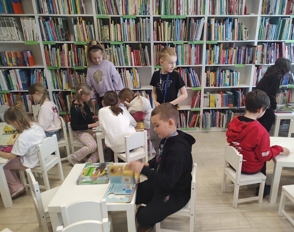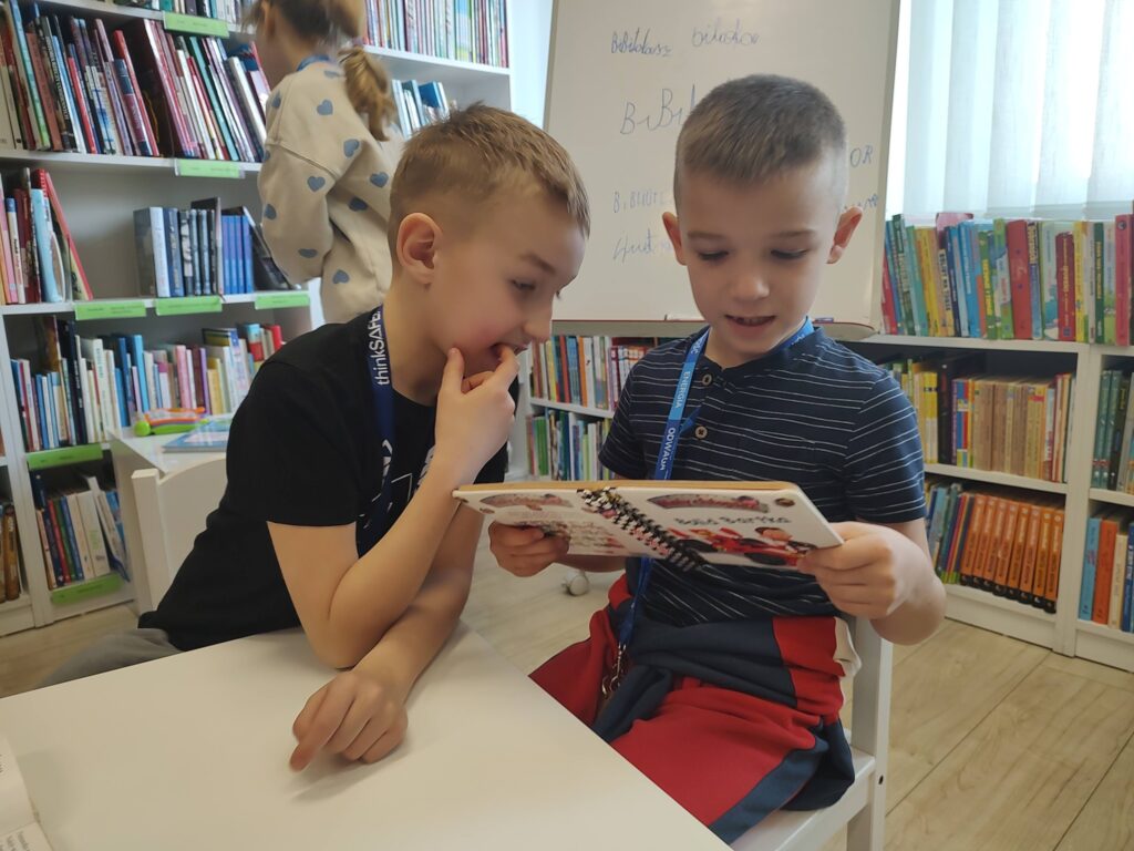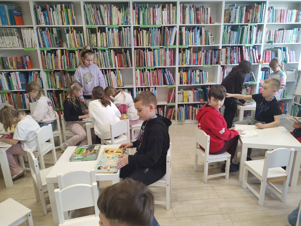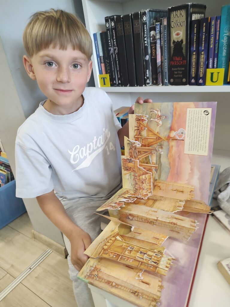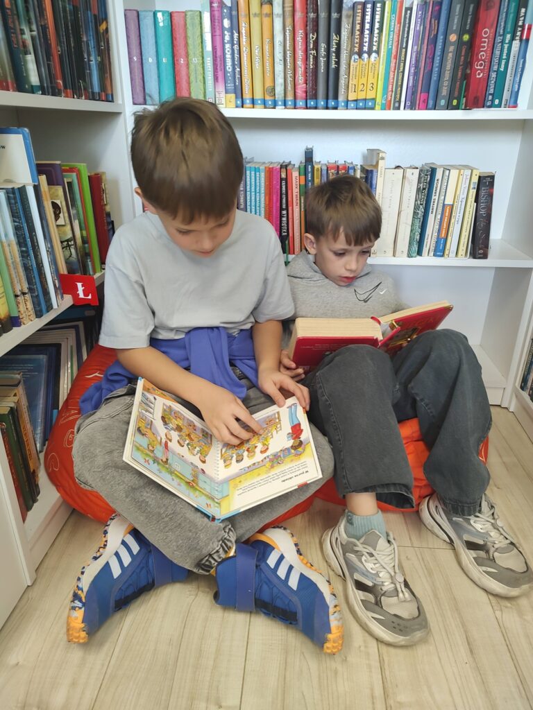 Podczas zajęć rozmawialiśmy również o korzyściach płynących z czytania książek. Dzięki literaturze możemy odkrywać nowe światy, rozwijać wyobraźnię i kreatywność, a także zdobywać wiedzę i przeżywać niezwykłe przygody razem z bohaterami książek. Tych zalet jest naprawdę wiele, dlatego warto zachęcać dzieci do częstego sięgania po książki i odwiedzania biblioteki.