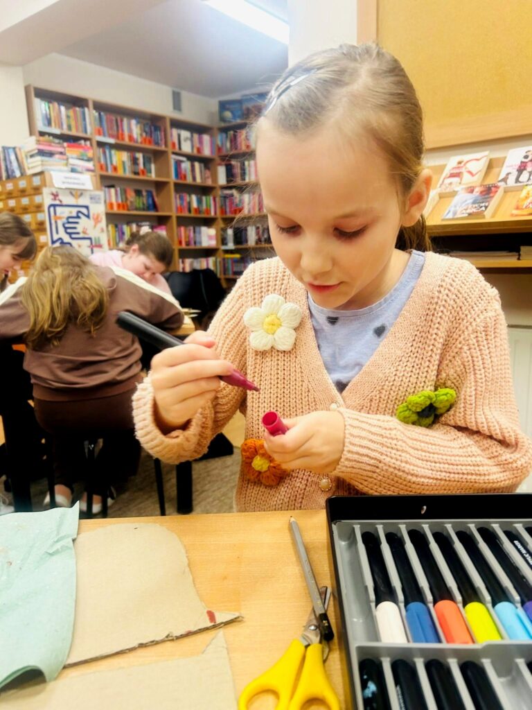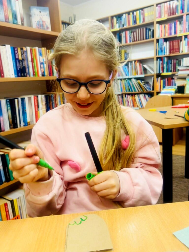 Jak zawsze nie zabrakło zaangażowania i pomysłowości. Dzieci z entuzjazmem przystąpiły do pracy, a przy użyciu kartonu, kleju i pisaków powstały niezwykłe, pełne charakteru kurki. Każda z nich była inna i wyjątkowa, co tylko potwierdziło, jak bogata jest wyobraźnia młodych twórców.
