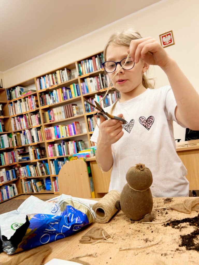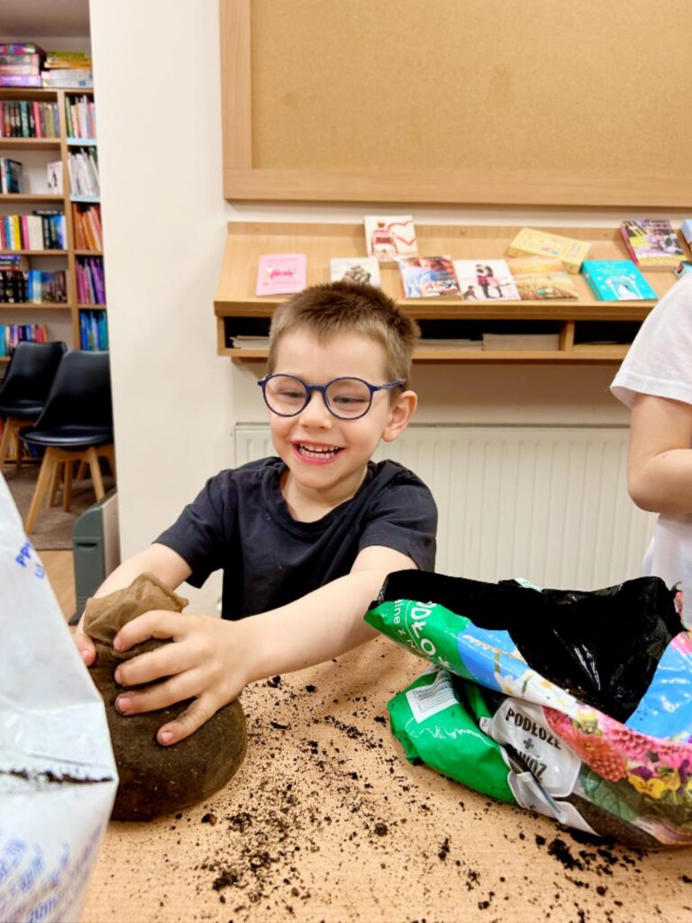 Dzieci z ogromnym zaangażowaniem zabrały się do działania. Z kawałków rajstop, ziemi oraz nasion trawy powstawały niezwykłe figurki, nawiązujące do zbliżającego się Dnia Ziemi. Uczestnicy wypełniali przygotowane materiały ziemią i nasionami, a następnie nadawali im fantazyjne kształty.
