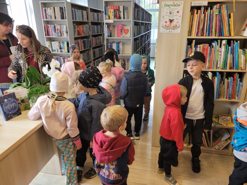 Dzieci z ciekawością zaglądały w różne zakamarki biblioteki, mając nadzieję, że uda im się spotkać opiekującego się książkami Skrzata. Choć nie udało się go wypatrzyć, sama świadomość jego obecności wywołała ogromne emocje.