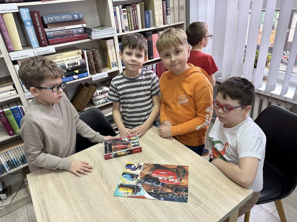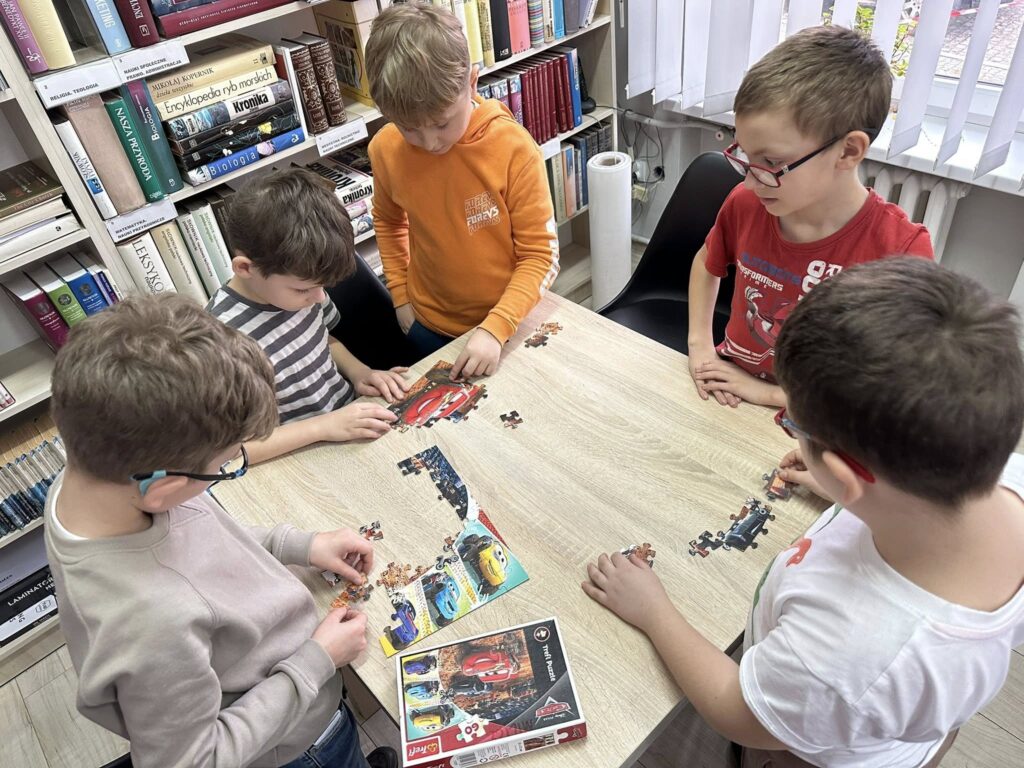 Na zakończenie nie zabrakło układania puzzli oraz wyboru książek na czas ferii. Dzięki temu dzieci mogły zrobić solidne czytelnicze zapasy na zimowy wypoczynek.