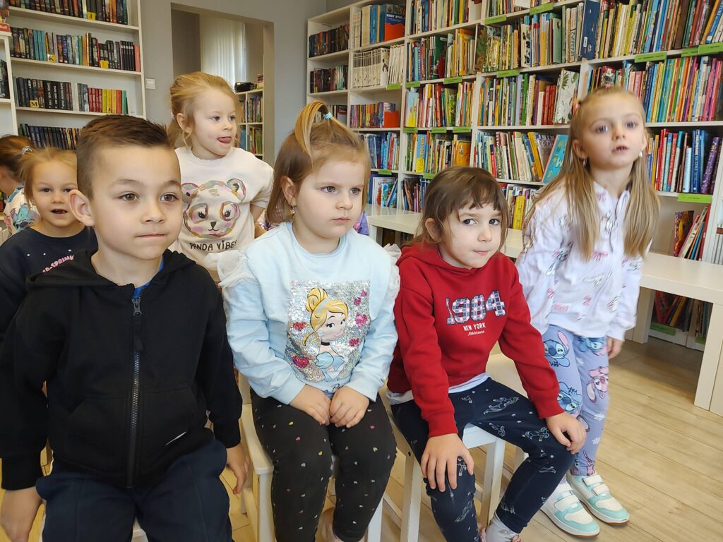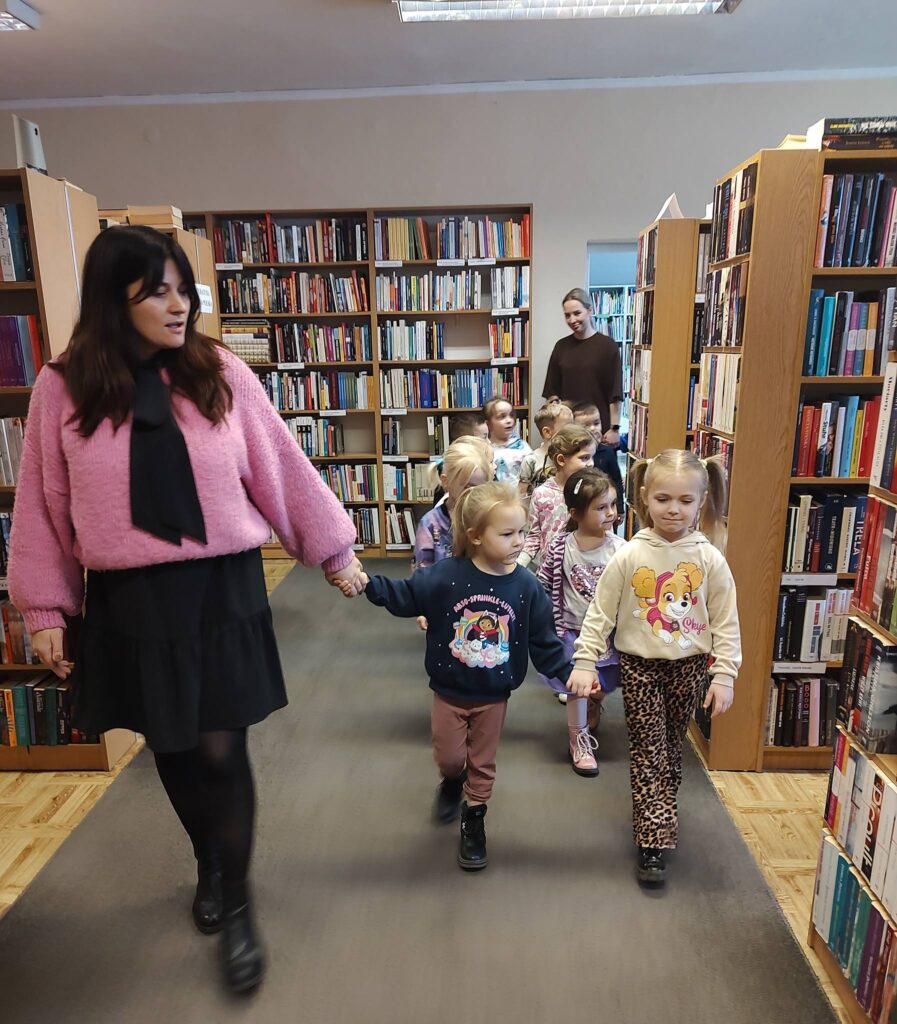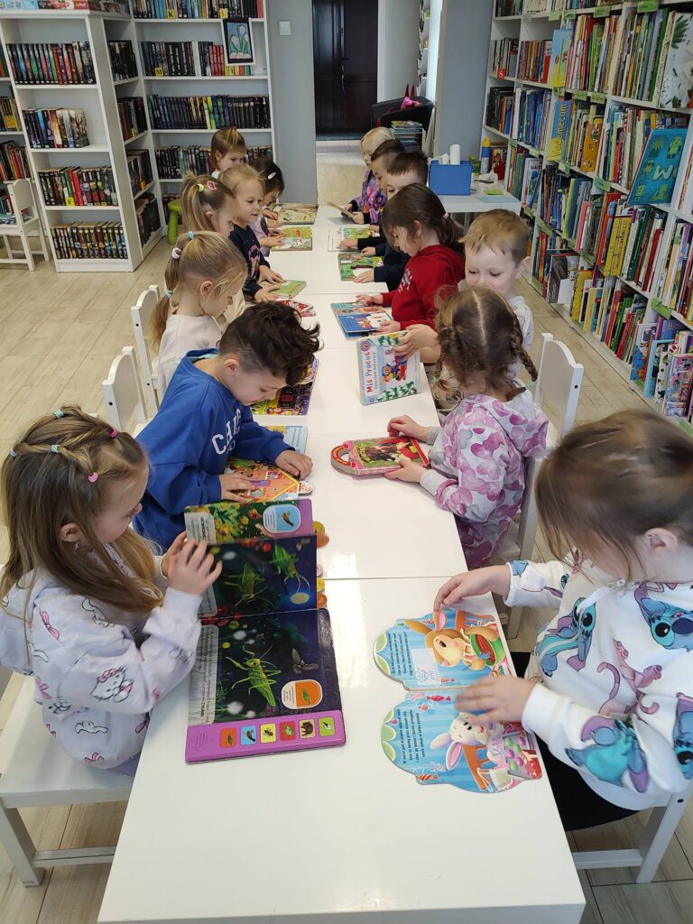 Nie zabrakło także chwili na oglądanie kolorowych książeczek oraz krótkie zwiedzanie biblioteki. Mali goście z dużym zainteresowaniem poznawali to miejsce i na zakończenie zgodnie stwierdzili, że jeszcze do nas wrócą – tym razem już razem z rodzicami.