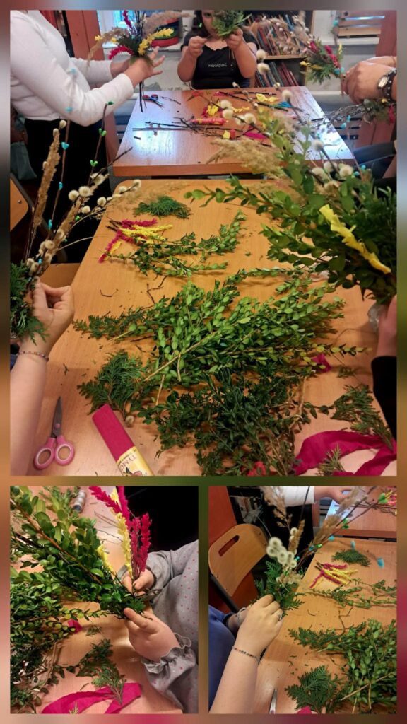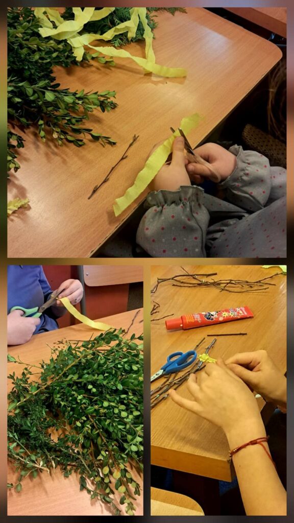 W dalszej części zajęć skupiliśmy się na tradycjach związanych z nadchodzącą Niedzielą Palmową. Rozmawialiśmy o znaczeniu palm wielkanocnych jako symbolu radości i odrodzenia, a następnie przystąpiliśmy do ich własnoręcznego wykonywania.