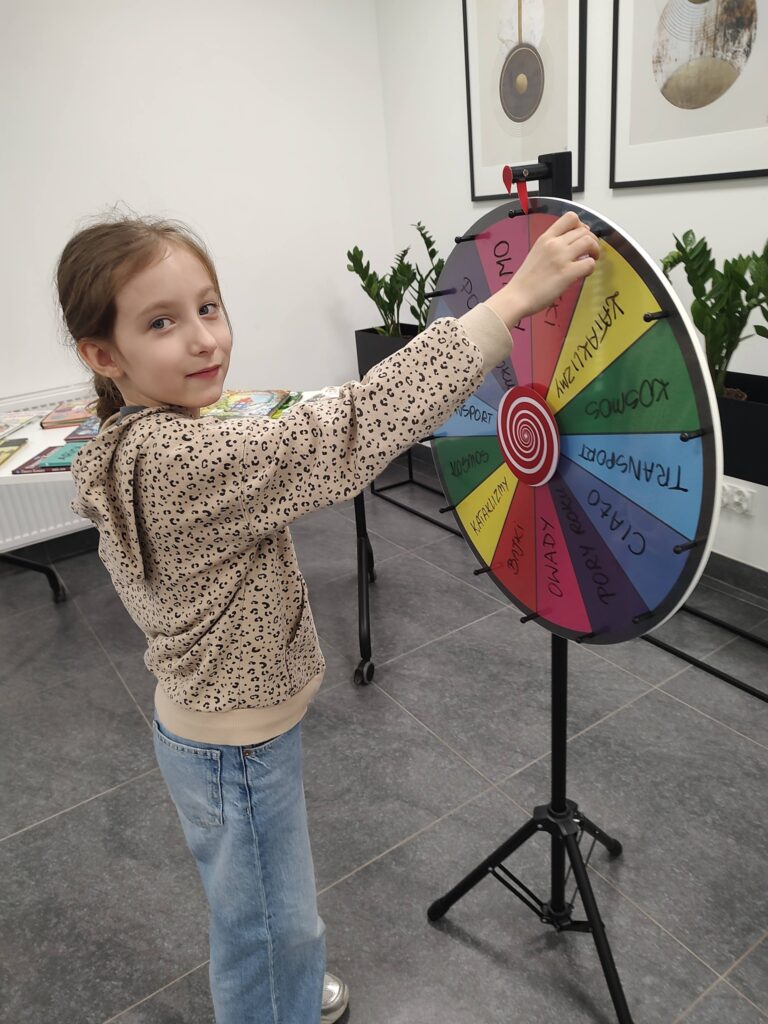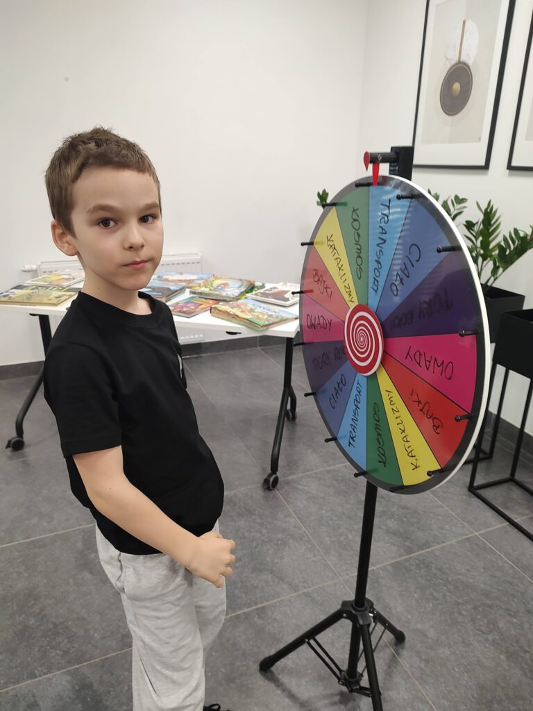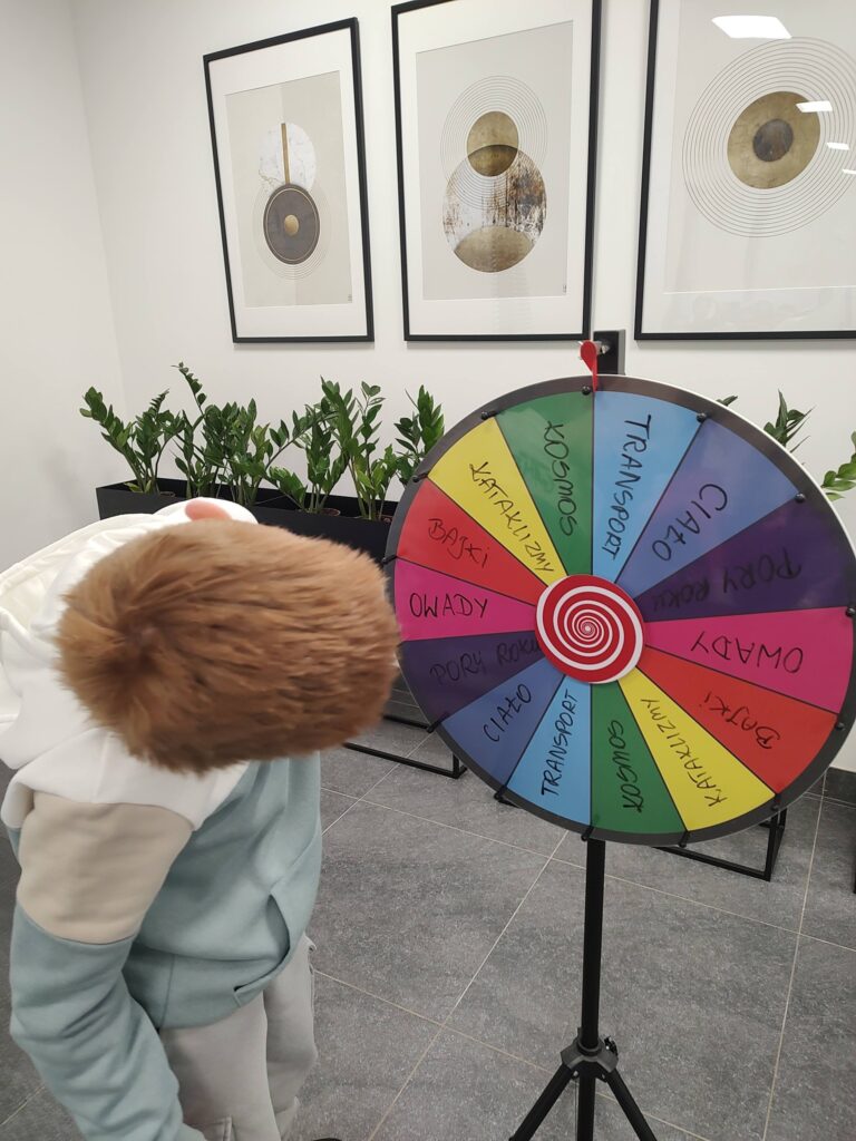 Po interesującej rozmowie przyszedł czas na zabawę. W ruch poszło „Koło fortuny”, dzięki któremu uczestnicy losowali różne dziedziny wiedzy, a następnie odpowiadali na przygotowane pytania. Było dużo emocji, śmiechu i dobrej zabawy.